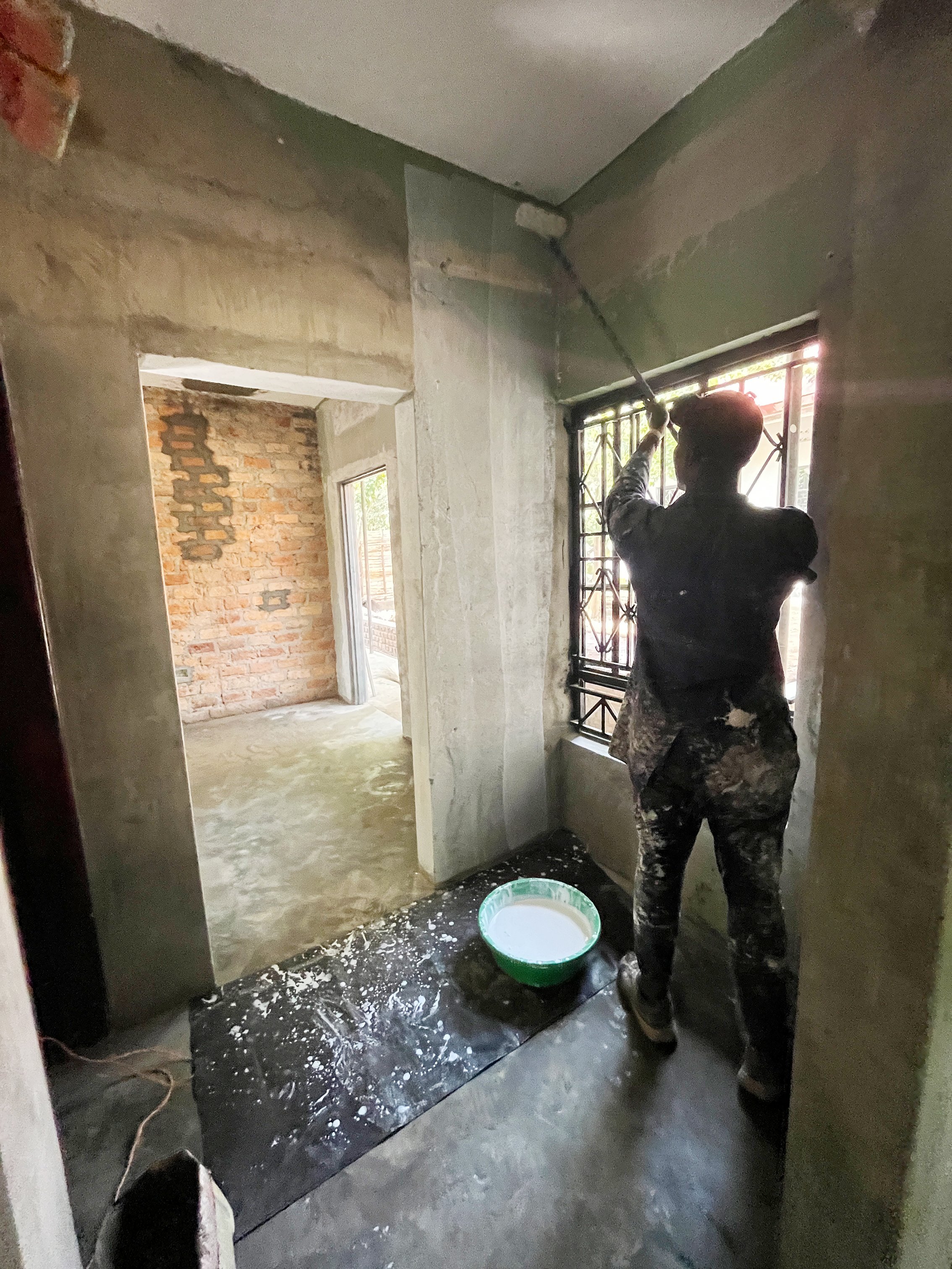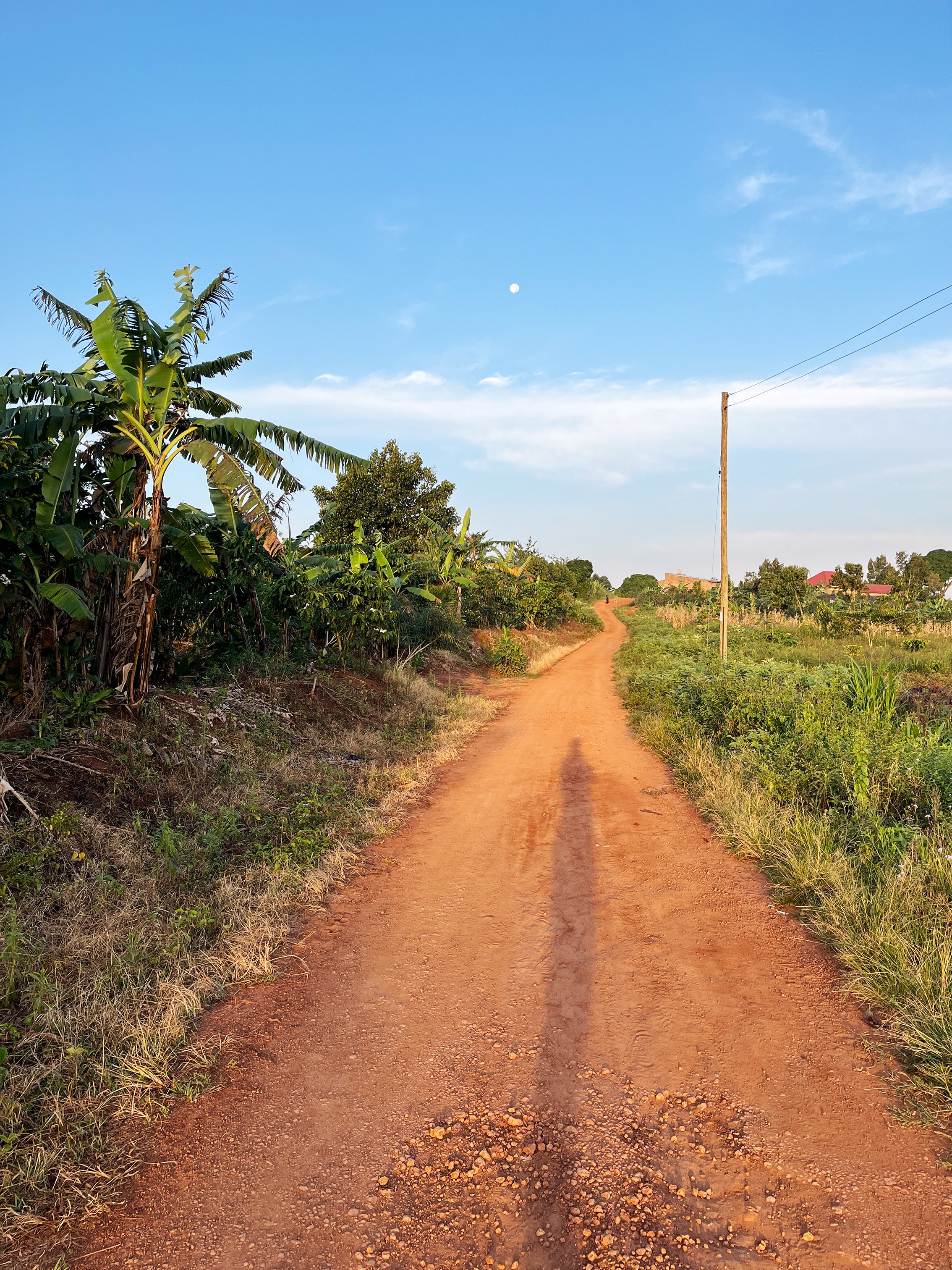 Before my space is ready to live in, I’m staying in a makeshift room. I shower with a single liter of water in a bucket, cook on a single burner, and rely on my power bank during frequent outages. My organic garbage finds its place in vermicompost (always wished for that), and every morning, four scruffy college dogs join me on my run, passing the homes of subsistence farmers. Around 9 a.m., the college director, Mr. Samuel Nyanzi, greets me warmly: “Good morning, Maria. What’s the program today?”