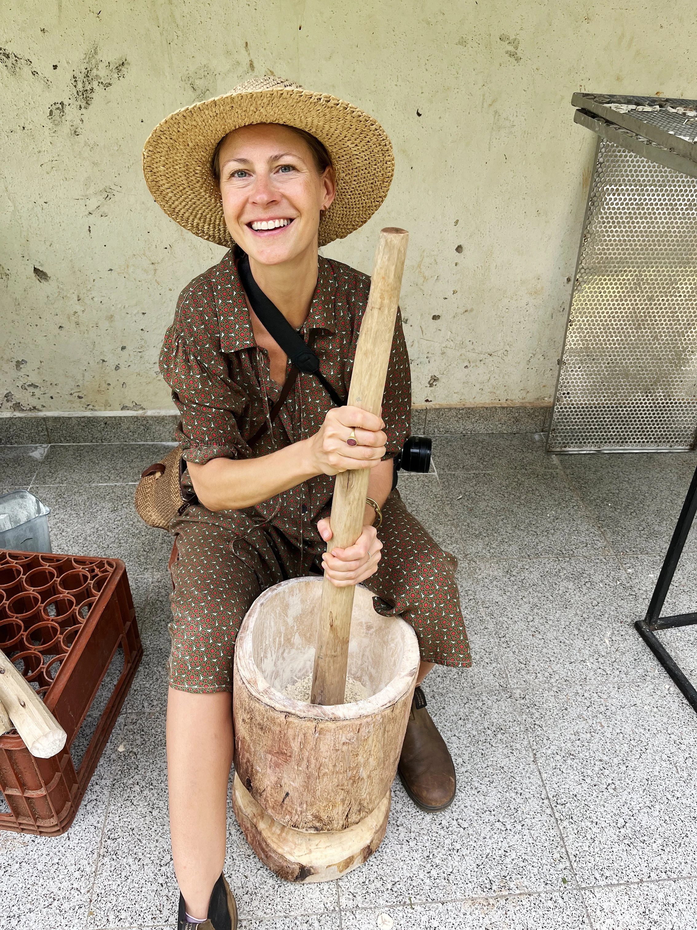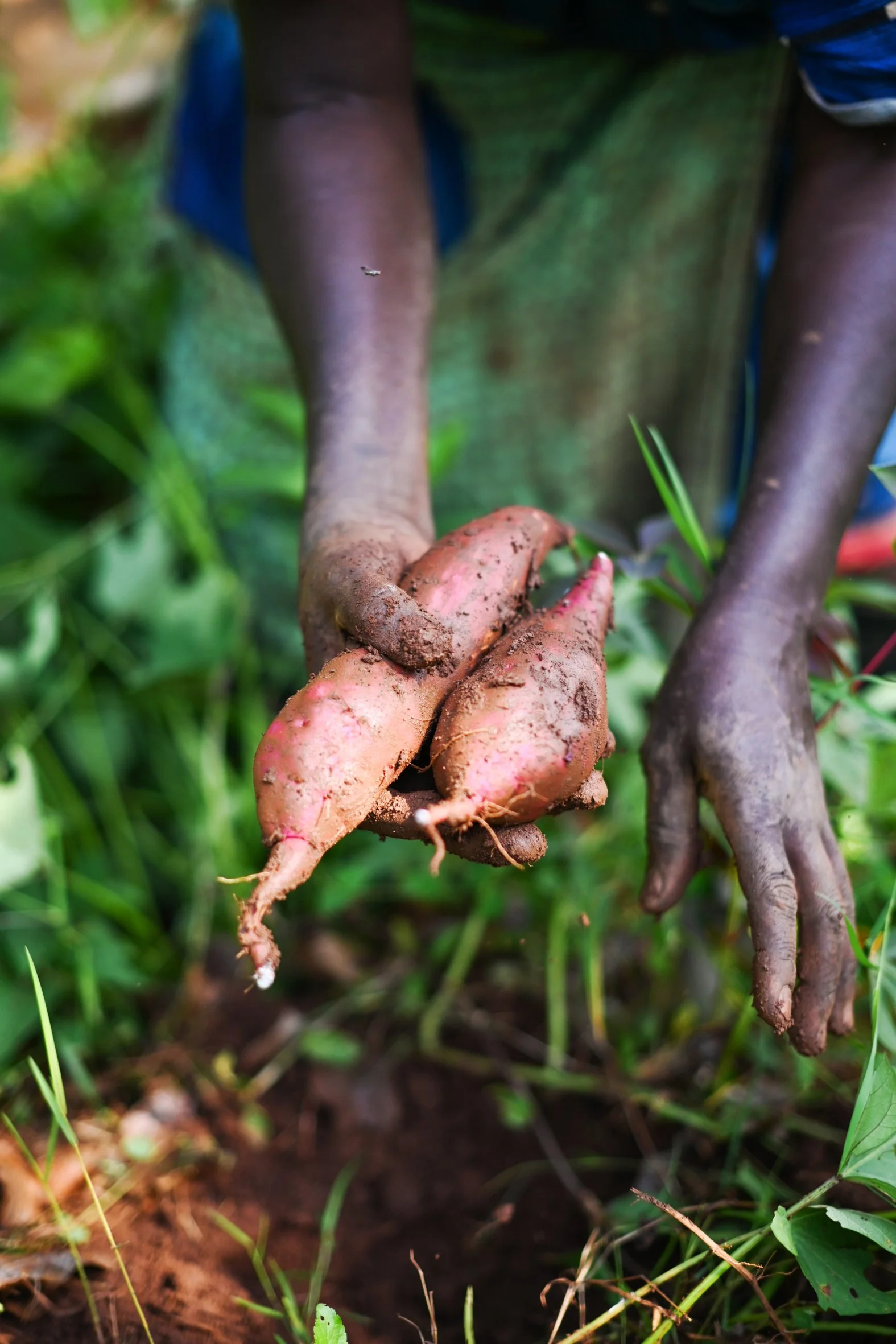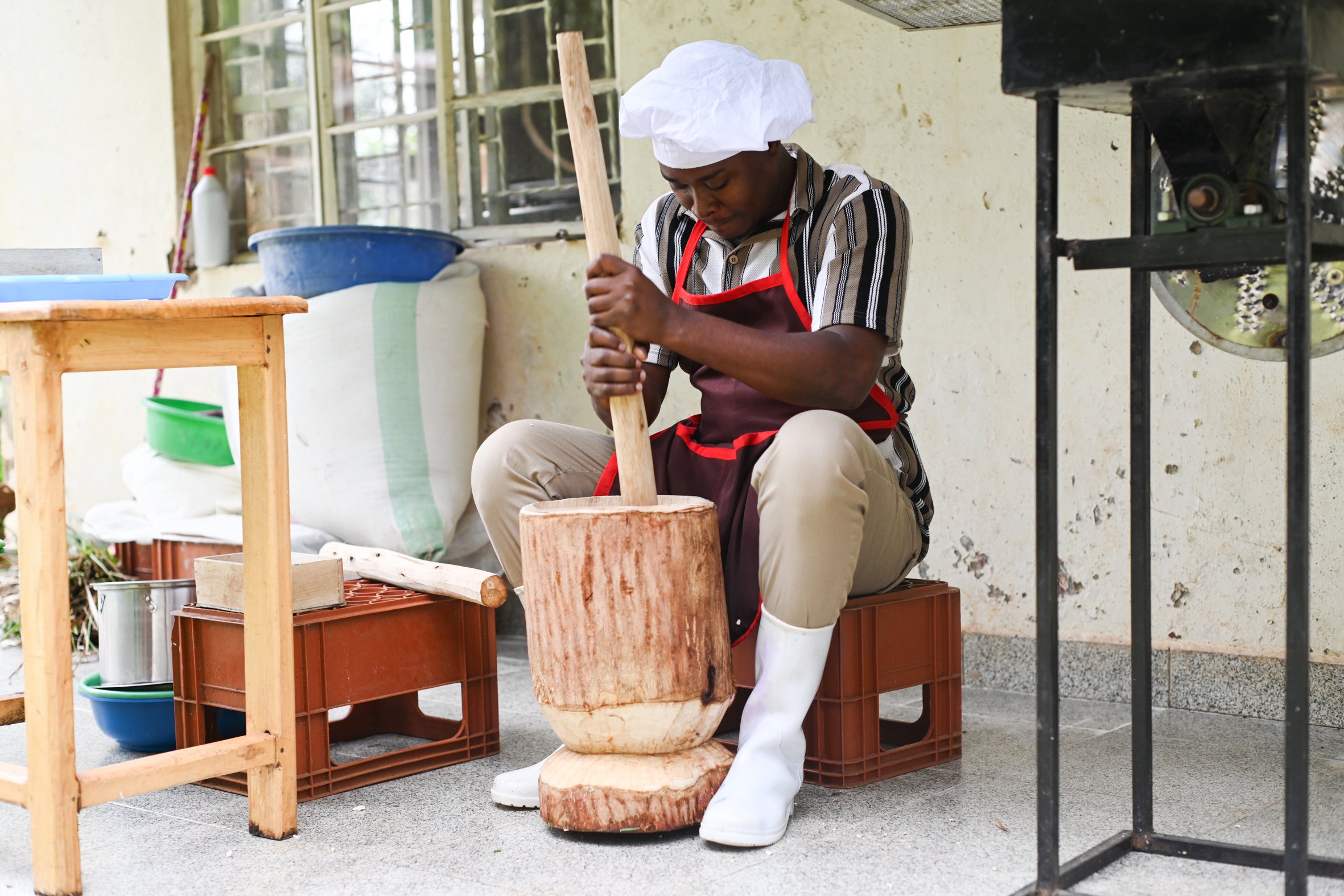 Above: From soil to plate knowledge. Our education takes a holistic approach, ensuring that people not only learn how to grow these foods but also how to process them and incorporate them into their kitchens. This shows the process of making sweet potato flour, which I tested with Bonny in the kitchen.